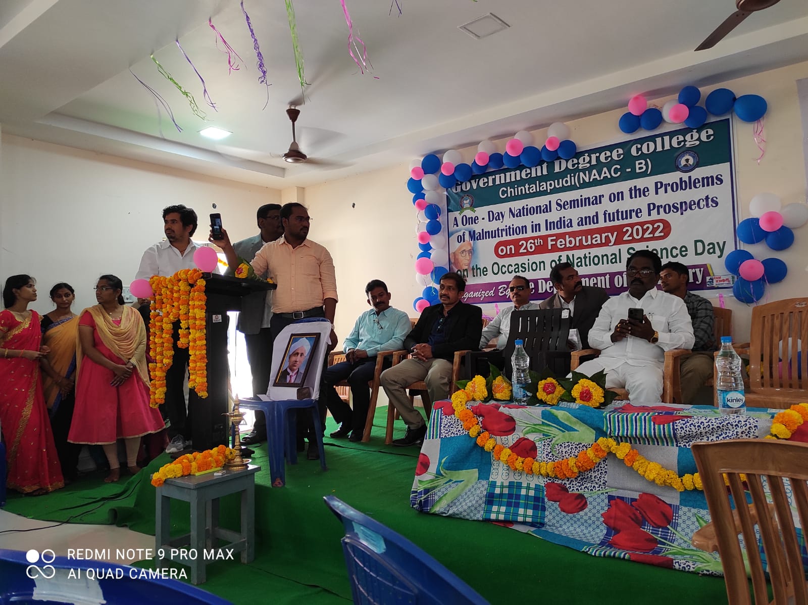 The first ever one-day National Seminar on the problems of “Malnutrition in India and Future Prospects” organized in association with National Institution of Hyderabad on the occasion of National Science Day Feb 2022. Dr.P.Srinivasa Rao Principal and Chair of the Event presided over the seminar.