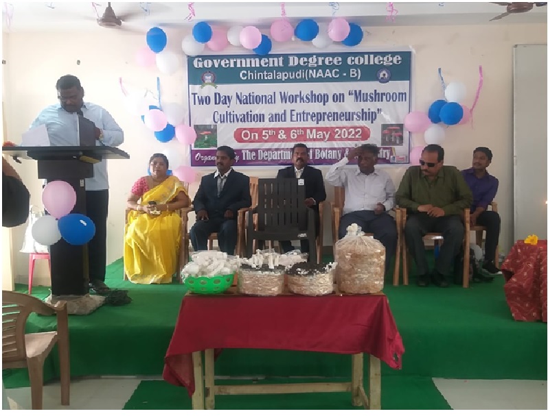 The Department of Botany, the Department of Horticulture and the Department of Chemistry jointly organized a Two Day National Workshop on “Mushroom Cultivation and Entrepreneurship on 05th & 06th May, 2022. Sri P. Vijayanand IPS, Addl.DGP (Rtd), Govt. of Kerala was Chief Guest to the Event. Dr. P. Srinivasa Rao, the Principal presided over the Workshop, Smt. N. Manimala was the Convener, Dr. A. Venkateswara Rao was the Co-Convener and V. Madan Mohan & Dr. B. Lavakusa were organizing secretaries for the Workshop.